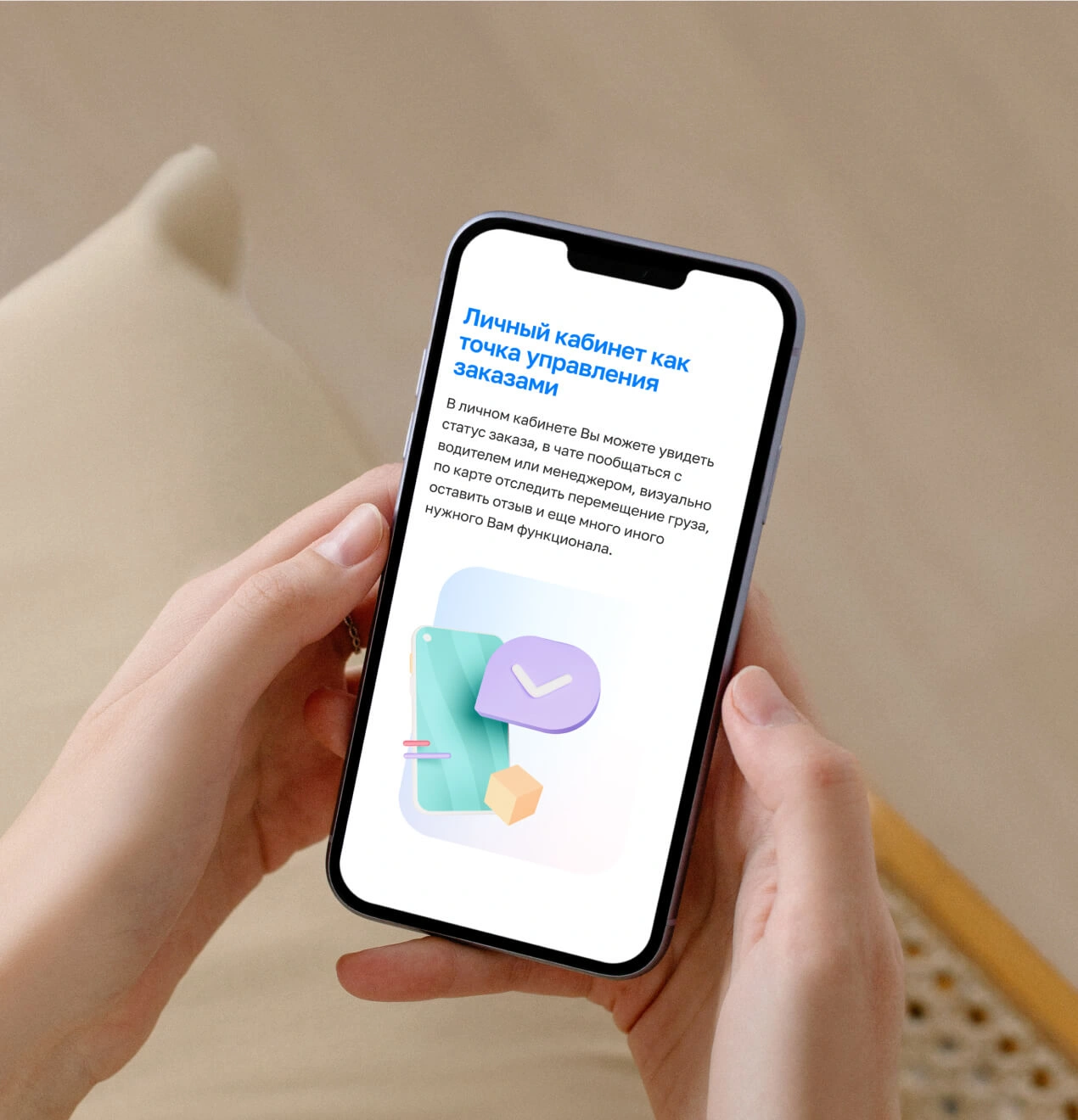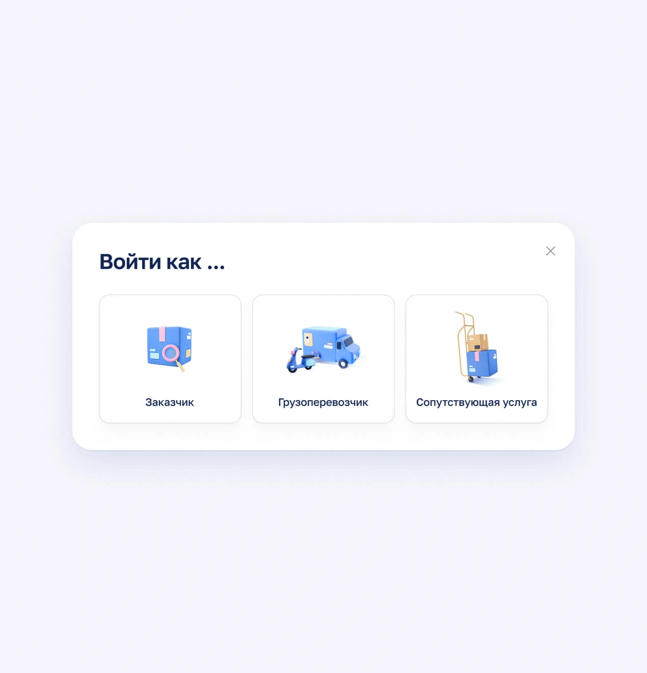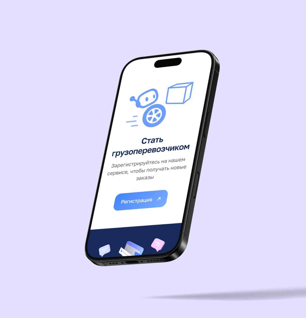 В сервисе есть роль заказчика и грузоперевозчика. Экраны заказчика отличаются фиолетовым цветом