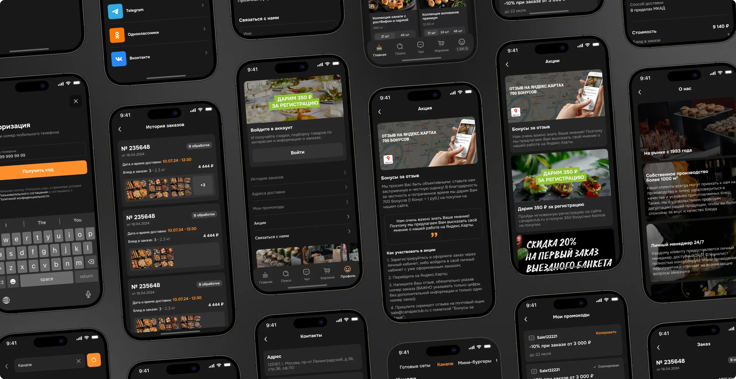 Пользователи могут одним кликом добавлять выбранные блюда и напитки в корзину, управлять количеством и просматривать детали заказа до того, как он будет оформлен. Мы усовершенствовали процесс оформления заказа, добавили возможность списывать баллы и применять промокоды.