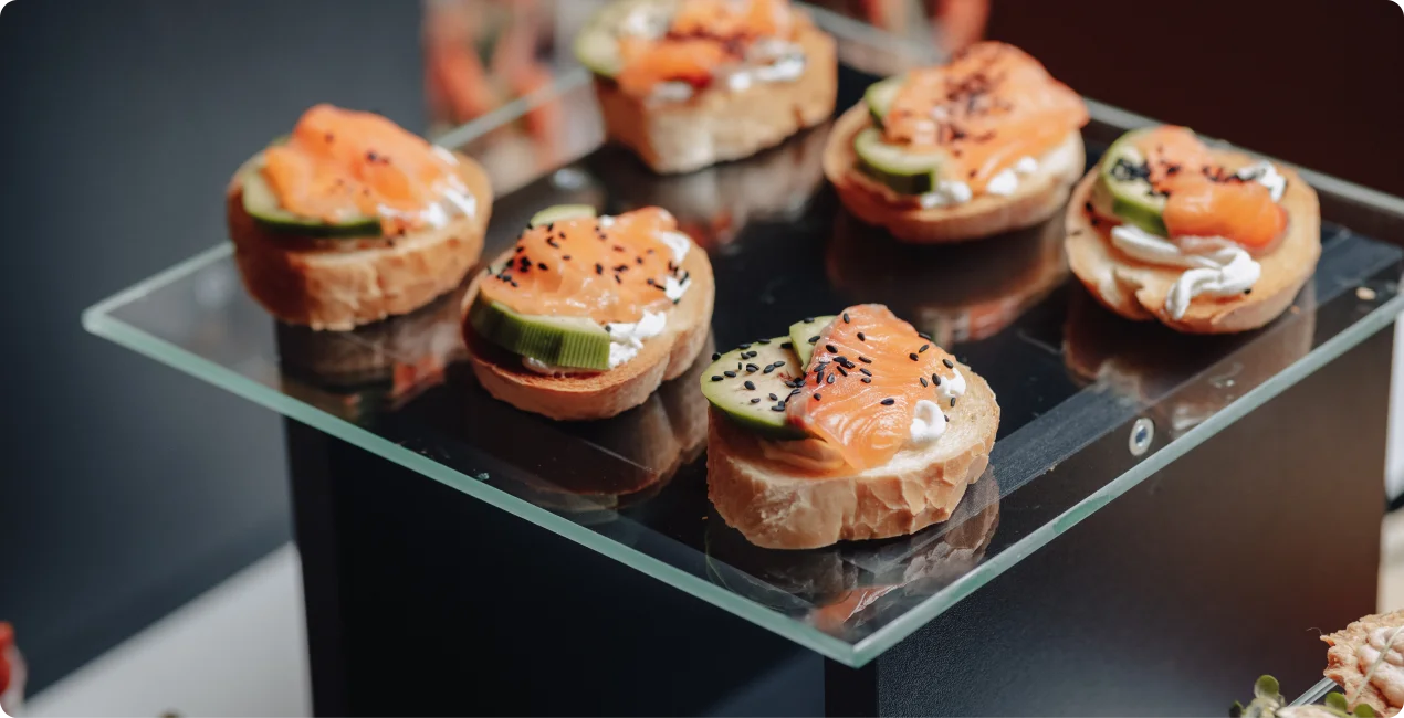 Компания «Канапе» с 1993 года предлагает профессиональные кейтеринг-услуги для различных мероприятий. Собственное производство площадью более 1000 м² позволяет обеспечивать высокий уровень контроля на каждом этапе приготовления блюд. Вся продукция сертифицирована и проходит проверку опытными технологами, что гарантирует высокие стандарты качества и безопасности.